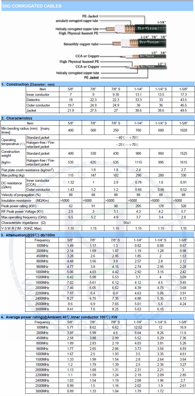 50 ohms corrugated copper tube coaxial cable is made on advanced physical foaming insulation production line and argon arc welding, corrugating and slotting production line which are imported respectively from Austria and USA. Application: Base stati..