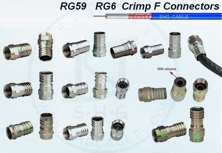 CATV RG59 RG6 RG11 hex Crimp Connectors, 75 ohms, high Return Loss, Low Insertion Loss.