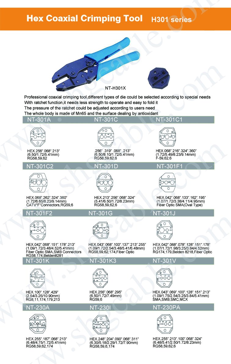 Hex Crimp Tool, H301x offer different hex crimp size